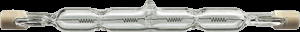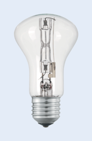 Галогенні лампи з подвійною колбою (рис. 1.4) працюють від напруги, мають різьбовий цоколь. Лампи характеризуються стабільною світловіддачею і відмінною передачею кольору. Лампи можуть працювати з регулятором яскравості. Застосовуються для освітлення житлових і громадських приміщень.