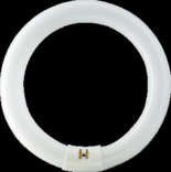 Люмінесцентні лампи у вигляді кільця (рис. 1.6), завдяки своїй формі застосовуються в широкому діапазоні освітлювальних приладів. Через малі габарити трубки цю лампу використовувати можна в максимально плоских світильниках. Вона застосовується для освітлення громадських та житлових приміщень.