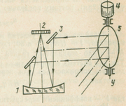 1 - объектив; 2 - ПИ; 3 - отражательное зеркало; 4 - электромагнит; 5 - сканирующее плоское зеркало.