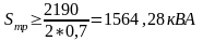 Требуемая мощность трансформатора определяется из выражения:
