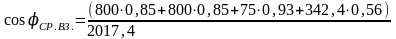 Находим средневзвешенный коэффициент мощности cosср.вз[2]: