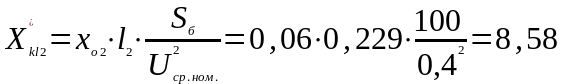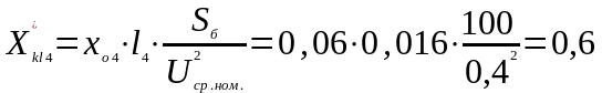 Определяем индуктивное сопротивление кабеля Х*КL1, KL2, KL3, KL4 [8]: