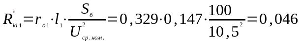 R=0,329 · 0,147=0,048 Ом; X=0,083 · 0,147=0,01 Ом;