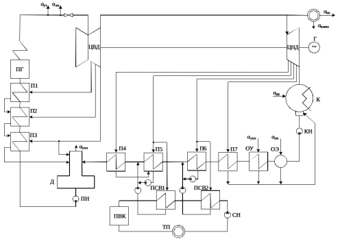 Принципиальная тепловая схема энергетического блока представлена на рисунке 1.