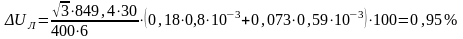 Потерю напряжения в линии без учета падения напряжения в разделке и наконечниках определяем по формуле: