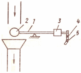 Помимо устройств, обеспечивающих автоматическое выключение подачи охлаждающей воды, во время, перерыва в подаче воздуха, на компрессорных установках осуществляют также автоматизацию контроля за охлаждением компрессоров. Установленные на компрессорных станциях приборы приспособления сигнализируют машинистам компрессорной станции о ненормальностях в работе компрессоров или отключают компрессор в случае повышения температуры воздуха и прекращения подачи воды для охлаждения компрессора. На рис 7 показана схема автоматического устройства, сигнализирующего об уменьшении подачи охлаждающей воды и останавливающее компрессор при нарушении подачи. Устройство просто по конструкции и состоит из рычага I, груза 2 и противовеса 3. Как только уменьшится расход воды на охлаждение компрессора, противовес опустится и замкнет сначала цепь сигнального устройства 4, а при дальнейшем уменьшении расхода воды или прекращении подачи ее замкнет цепь отключающего устройства б, и компрессор остановится.