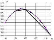 Рис.13. Скоростная характеристика двигателя с кусочно-непрерывными функциями.