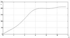 При оборотах >150 скоростная характеристика двигателя представляет собой нелинейность, описываемую полиномом 3 порядка. Это делает невозможным использование аналитических методов для исследования системы. Необходимо пользоваться численными методами для решения дифференциальных уравнений.