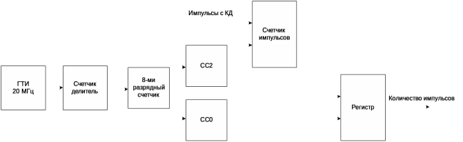 Счетчик делитель задает необходимое время подсчета импульсов с кодового датчика. Коэффициент зависит от времени измерения по формуле: 80*Х, где Х- время измерения в мс. Период измерения не должен быть слишком большим. Иначе счетчик переполнится и обнулится.