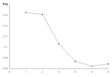 Рис.9. Кривая зависимости минимальных значений коэффициента трения