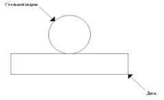 Узел трения состоит из неподвижно закрепленного испытательного диска и вращающегося стального шарика диаметром 10 мм, который контактирует с поверхностью диска, при этом происходит точечный контакт (См. Рис. 1).