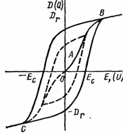В отсутствии внешнего электрического поля сегнетоэлектрики, как правило, имеют доменную структуру, то есть разбиваются на микроскопические области, обладающие спонтанной поляризацией. В принципе, у ферромагнетиков также имеются домены – области спонтанного намагничивания, поэтому поведение сегнетоэлектриков в электрическом поле подобно поведению ферромагнетиков в магнитном поле. Единственным различием между сегнетоэлектриками и ферромагнетиками является то, что при помещении их в электрическое поле меняется вектор электрического смещения D = E + P, а у ферромагнетиков при помещении в магнитное поле меняется индукция B = H+I.