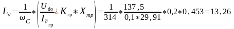 приймається 35 для нульової схеми. Необхідна індуктивність для якірного кола системи ТП–Д визначається формулою: