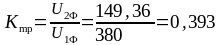Коефіцієнт трансформації трансформатора: