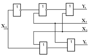 Відповідно з (5.1) сигнал y1 подається на СІФК1, якщо x2=1 або x2=0 i x1=0, але x0=1. Аналогічно y2=0, якщо x1=1 або x1=x2=0, але x0=0.
