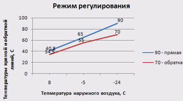 - температурный график: 90/70 (зависит от температуры наружного воздуха);