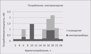 Рисунок 3.19 . Суточный график нагрузок офиса в зимний период