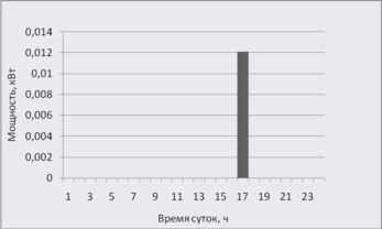 Рисунок 3.16 - Использование фактической мощности системой освещения офиса в течение суток в зимний период