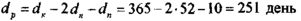 где dp - количество рабочих дней в году; dK - количество календарных дней в году; dH - количество недель в году, dH - 52; dп - количество праздничных дней в году.