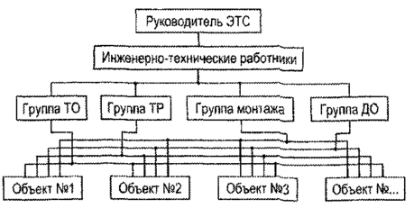 Поэтому важно выбрать наиболее рациональную структуру ЭТС, Организационная структура характеризует состав и взаимодействие подразделений службы при выполнении производственной программы. ЭТС может иметь: функциональную, территориальную или комбинированную (гибкую) структуры.