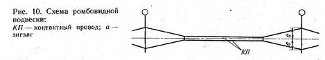 Для повышения ветроустойчивости сокращают длину пролетов или применяют пространственную подвеску. Выполняют цепную подвеску либо двумя несущими тросами, закрепленными у опоры с разных сторон от оси токоприемника, либо ромбовидной цепной подвеской с двумя контактными проводами (рис.10). Для простой подвески можно рекомендовать полигонную подвеску. В тяжелых условиях применяют одновременно сокращение пролетов и одну из указанных подвесок.