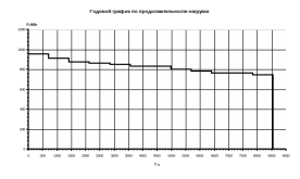 Годовой график строится на основе характерных суточных графиков за весенне-летний и осенне-зимний период. Это пример упорядоченного графика, т.е. такого, в котором все значения нагрузки расположены в порядке убывания (рис.5). Такой график показывает длительность работы в течение года с различной нагрузкой. Начальная ордината этого графика равна максимальной нагрузке. По суточным графикам с учетом количества различных типов суток в году для каждого значения мощности нагрузки суммируем время, в течение которого данная нагрузка имела место в течение года. В начале определяется время, в течение которого эта нагрузка имела максимальное значение, а затем отрезки времени для других значений мощности нагрузки, берущиеся в порядке убывания. В результате имеем годовой график, нагрузки, который показывает продолжительность работы при данной нагрузке. Поэтому такой график называют графиком по продолжительности.