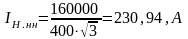 Номинальный линейный ток обмотки низшего напряжения (НН):