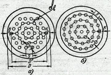 Рис. 1.Размещение трубок в трубной решетке трубчатого подогревателя.