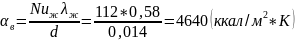 α- коэф. конвективной теплоотдачи, Вт/(м2*K).