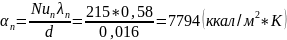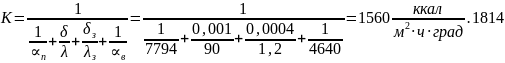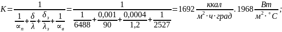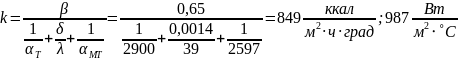 Расчетный коэффициент теплопередачи (коэффициент теплопроводности стали =39 ккал/м ч град) определяем по формуле для плоской стенки, так как ее толщина меньше 2,5 мм: