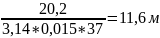 Длина хода по трубкам при среднем диаметре трубок d= 0,5(dH+dB); d= 0,5∙(0,016+0,014) =0,015 м