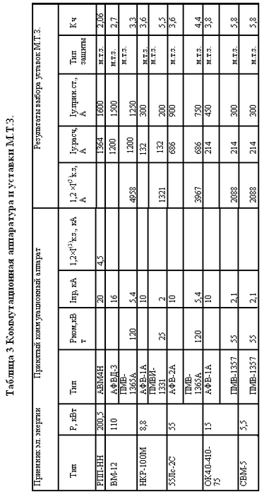 Результаты выбора коммутационной аппаратуры и уставок максимальной токовой защиты сведём в таблицу 3. /лист 43/