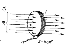Если какая-либо поверхность расположена наклонно по отношению к направлению магнитных силовых линий в соответствии с рисунком 1.4-б, то пронизывающий ее поток будет меньше, чем при перпендикулярном ее положении, т.е. Ф2 будет меньше Ф1.