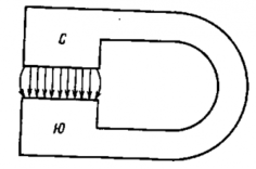 Распределение силовых линий между полюсами плоского магнита можно обнаружить при помощи стальных опилок, насыпанных на лист бумаги, положенный на полюсы соответствии с рисунком 1.2-б. Для магнитного поля в воздушном зазоре между двумя параллельно расположенными разноименными полюсами постоянного магнита характерно равномерное распределение силовых магнитных линий соответствии с рисунком 1.3.