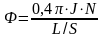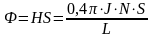 Если на таком соленоиде длины L см расположено N витков проволоки, по которым проходит ток силой в J ампер, то число линий сил на площадку в 1 квадратный сантиметр, расположенную перпендикулярно к линиям сил внутри соленоида, или сила поля внутри соленоида, может быть выражена формулой