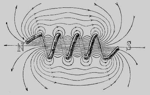 Чем ближе расположены друг к другу отдельные витки соленоида, чем большее число витков приходится на единицу длины соленоида и чем больше длина соленоида, тем более параллельны по направлению и равномерны по густоте распределения линии сил внутри соленоида, т.е. тем однороднее до силе и направлению будет магнитное поле внутри соленоида.