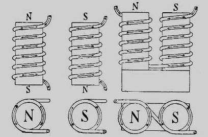 Негодной, на современный взгляд, оказывается и очень часто использовавшаяся конструкция, один магнит в которой составлен из трех более мелких и намотанных отдельно. Ясно, что в промежутках между этими маленькими магнитами магнитные поля двух соседних стержней взаимно уничтожаются.