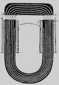 Если мы опять пожелали бы получить В = 12000, а l было бы равным только 1 мм, то нам потребовалось бы, благодаря огромному сопротивлению, введенному двумя тонкими воздушными слоями, уже не 360, а 2280 ампер-оборотов!