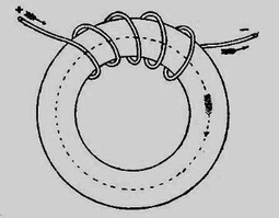 Рисунок 2.6 – Силовые линии сплошного замкнутого железного сердечника, не по всей длине обмотанного проволокой