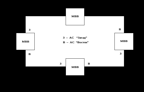 В, З – восточный и западный порты мультиплексора ввода/вывода.