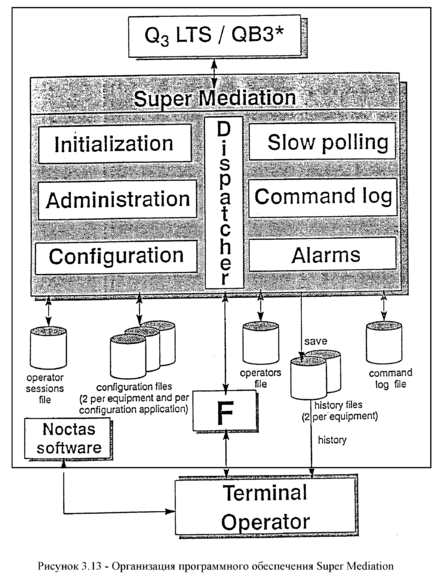 2) Диспетчер. Эта часть направляет все сообщения, приходящие от интерфейсов, к части Super Mediation (управление конфигурацией, управление авариями).