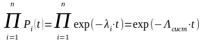 вероятности безотказной работы каждого элемента на интервале времени (0…t), n - число элементов в системе. Если отказы отдельных элементов происходят независимо, а отказ хотя бы одного элемента ведёт к отказу всей системы (такой вид соединения элементов называется последовательным), то вероятность безотказной работы системы в целом равна произведению вероятностей безотказной работы отдельных её элементов