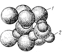 Рисунок 7 - Структура закису міді [1]: 1 – кисень; 2 – мідь