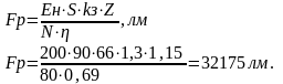 задаючись числом світильників визначаємо потужність одного, і приймаємо відповідну лампу.