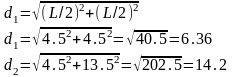 Відстані d1 і d2 – визначаємо по формулі Піфагора.