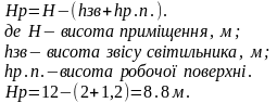 Визначаємо розрахункову висоту приміщення виходячи з того, що висота верстатів 1,2м, а висота підвісу світильника 2м.