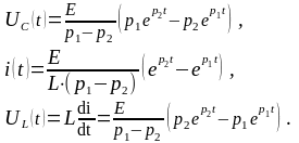 Используя начальные условия Uc(0-) = E и i(0-) = 0, получаем систему уравнений