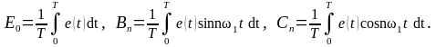 Постоянная составляющая Е0 и коэффициенты ряда Фурье Вn и Сn рассчитываются по формулам