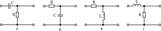 Рис. 1. Схемы RC и RL цепей 1-го порядка: а, в – дифференцирующие цепи; б, г, – интегрирующие