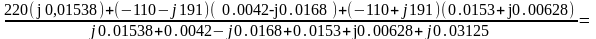 = (j3.38-3.67+j1.05-2.88+j2.23)/(0.05075+j0.00486) = (-6.55+j6.66)/(0.0195+j0.03611)= 67+j218 = 228